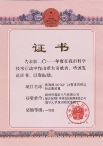 一種新型試驗(yàn)電源設(shè)備上用倍壓塔-發(fā)明專利證書