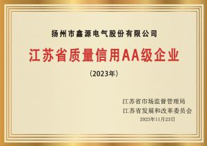 江蘇省質(zhì)量信用AA級(jí)企業(yè)